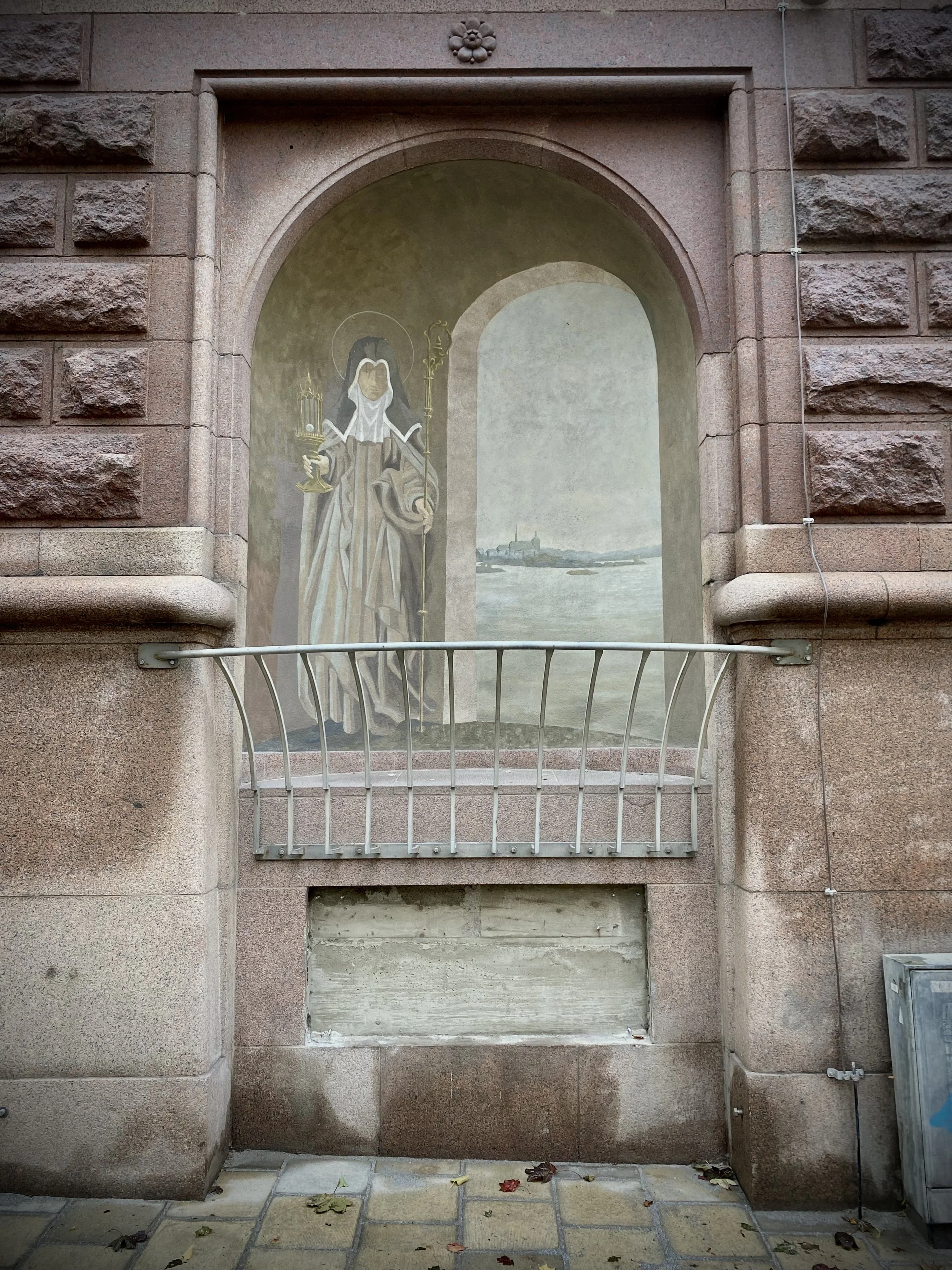 ”Sankta Clara”, väggmålning utförd av Ahlsén & Lindström Arkitekter och Konstnärer 1993 på uppdrag av Statens Fastighetsverk.