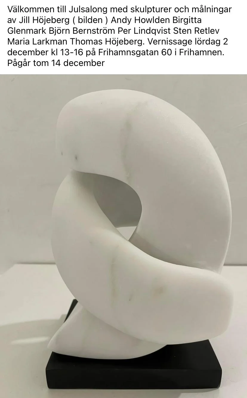 Välkommen till Frihamnsgatan 60 denna helg. Öppet lördag och söndag 13-16. Nya verk av Per Lindqvist (bild) skulpturer av Andy Howlden, akvareller av Björn Bernström, målningar av Carsten Regild , Lars Andersson, Sten Retlev, Takaskiki Torao m.fl.