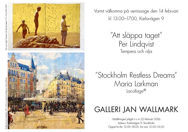 Utställningar i urval Att släppa taget 2026 På detta tidens smala näs2024 Nya Perspektiv 2020 Horisont 2018 Going home2016 Passing by2009 Flygplatsen1992 Wingler & Co IWingler & Co II1989-1990 Villa Solkattens Anatomi1985